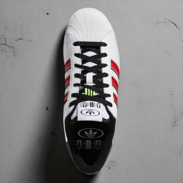 Los tenis adidas Superstar debutaron en las canchas de básquet, pero no pasó mucho tiempo hasta que llegaron a la escena del hip-hop y luego a los pies de todo el mundo. Aún después de cinco décadas, estos tenis siguen vigentes y están aquí para revolucionar las cosas. Los llamativos colores en contraste alteran su ADN original para imprimirle energía fresca a este estilo clásico. El exterior de piel y la punta se mantienen fieles a la versión original de los 70.