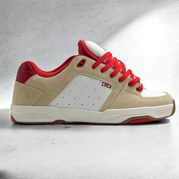 SERIE COLD CEMENT: una reedición moderna del famoso modelo retro 805 de C1RCA. Hecho para sesiones extremas de skate, viene con una fuerte construcción de cemento frío con entresuela de caucho natural que mejora el rebote y suela exterior tipo gofre para un excelente agarre.