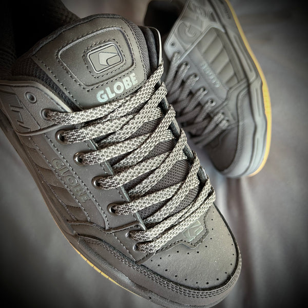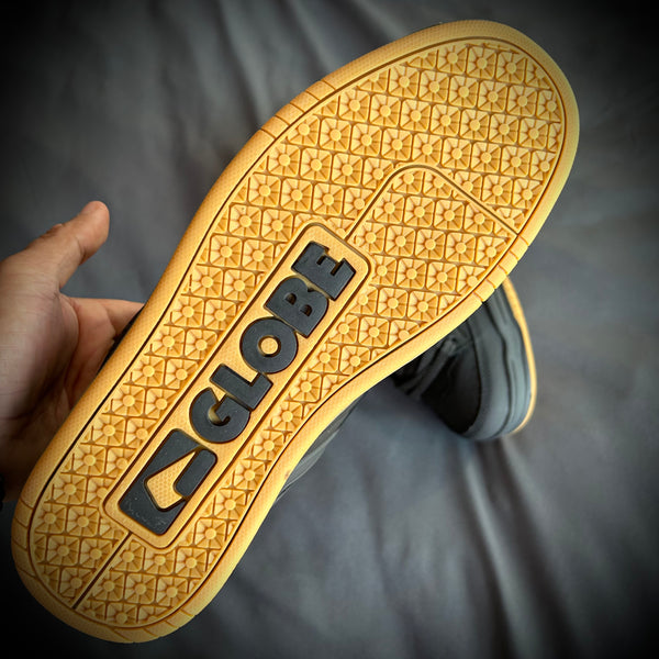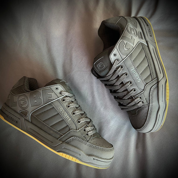 El calzado Globe Tilt  es un estilo de suela de copa totalmente acolchada con el tratamiento del logotipo hecha de nubuck acción / nubuck sintético / malla / TPR. Cuenta con un cuello de TPR moldeado con Globe's S-Trac ™ patrón de la suela.